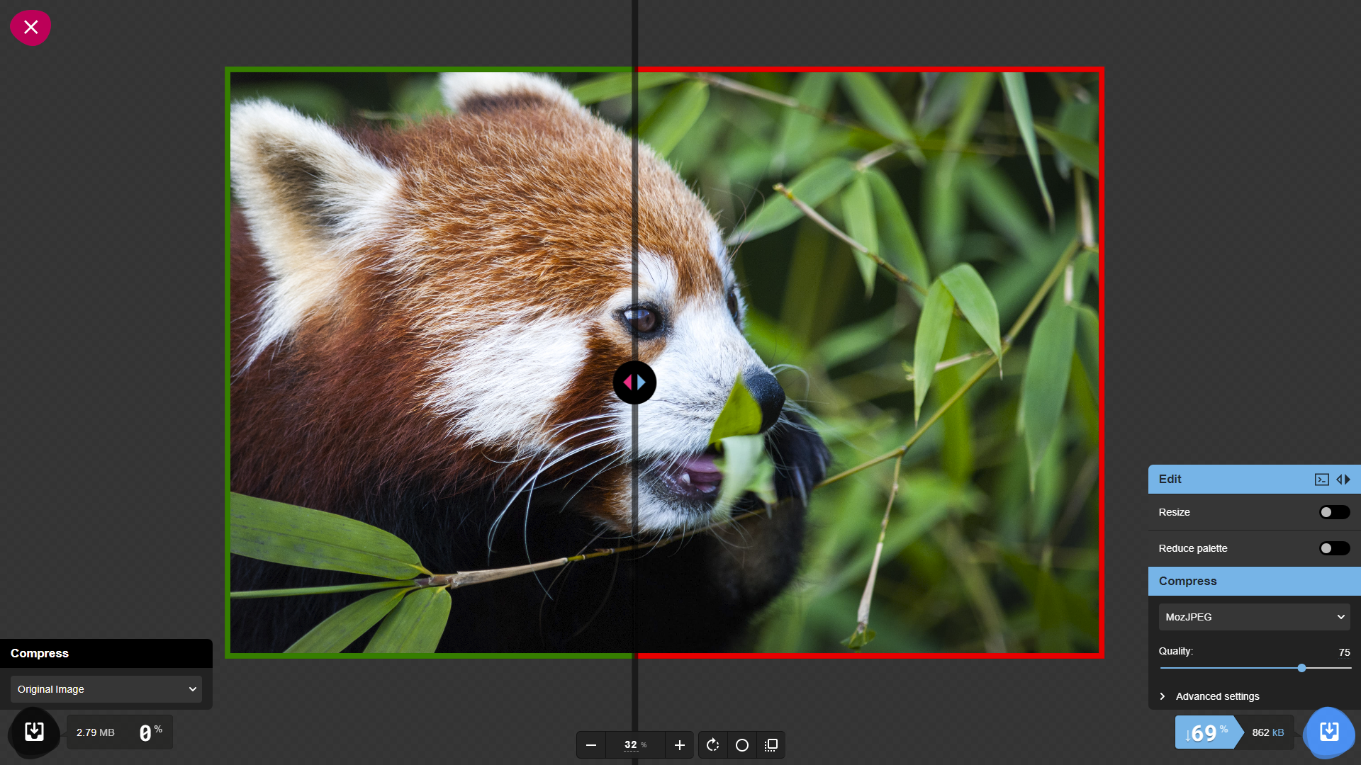 }✔️ Squoosh.app uses two Canvases, one for each side of the comparison.