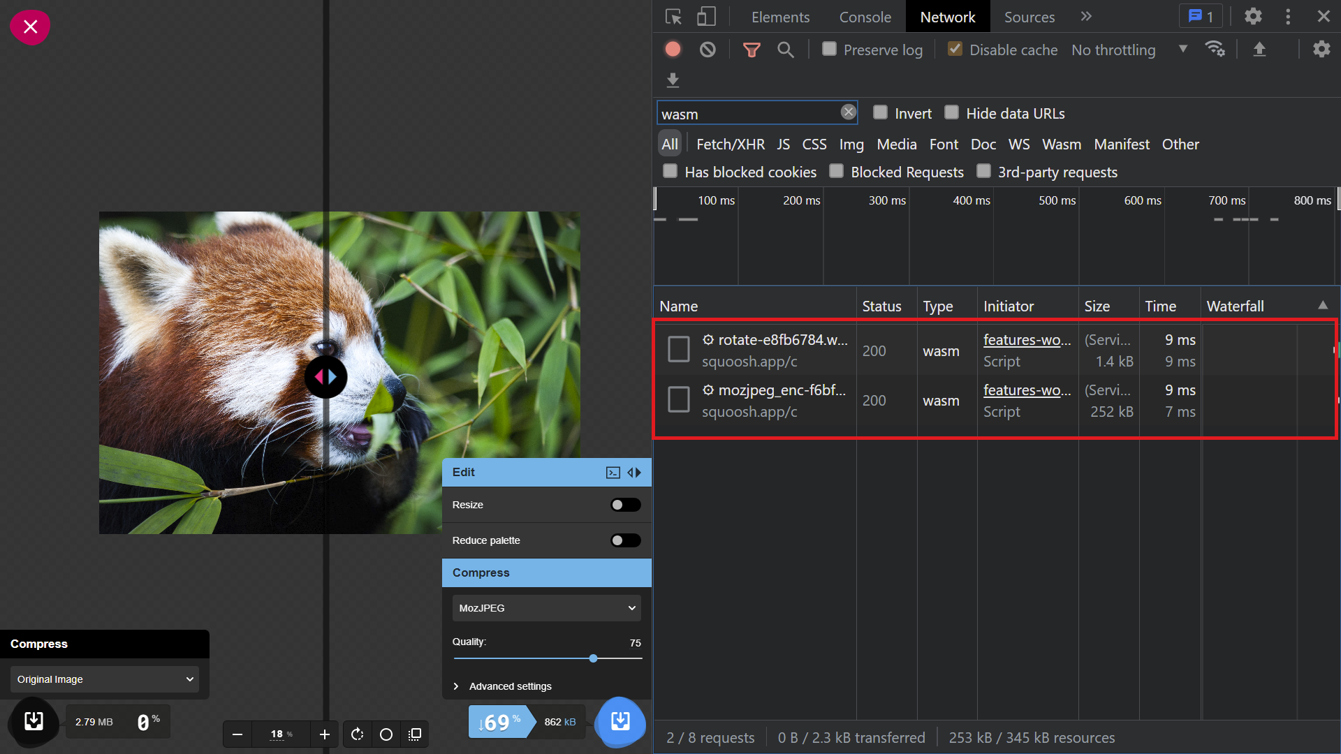 ✔️ Squoosh.app uses Web Workers to convert the images off the main thread. This way, the website stays responsive.