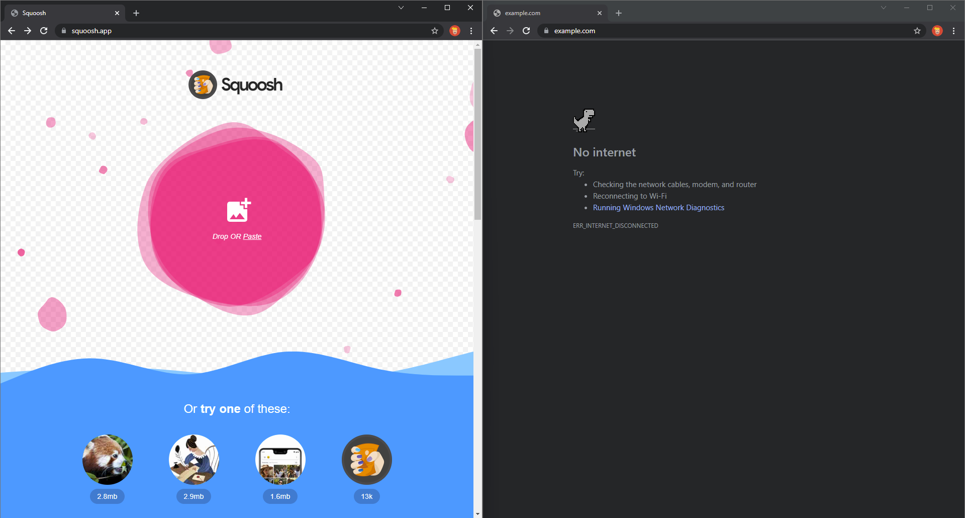 ✔️ Squoosh.app uses a Service Worker to work offline, and be able to install on your device.